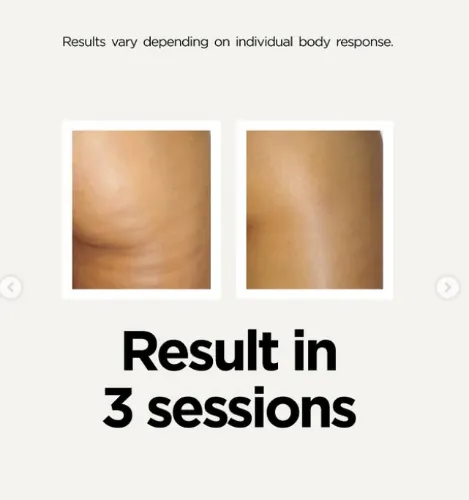 Результаты аппаратных процедур формируются постепенно. Большинство клиентов замечают улучшение текстуры кожи и уменьшение отёчности уже после 2–3 сеансов. Заметное уменьшение целлюлита обычно становится очевидным к 4–6 процедурам, а полноценное ремоделирование — более упругая кожа, более гладкие контуры и уменьшение неровностей — проявляется через 6–8 недель по мере завершения регенерации коллагена.